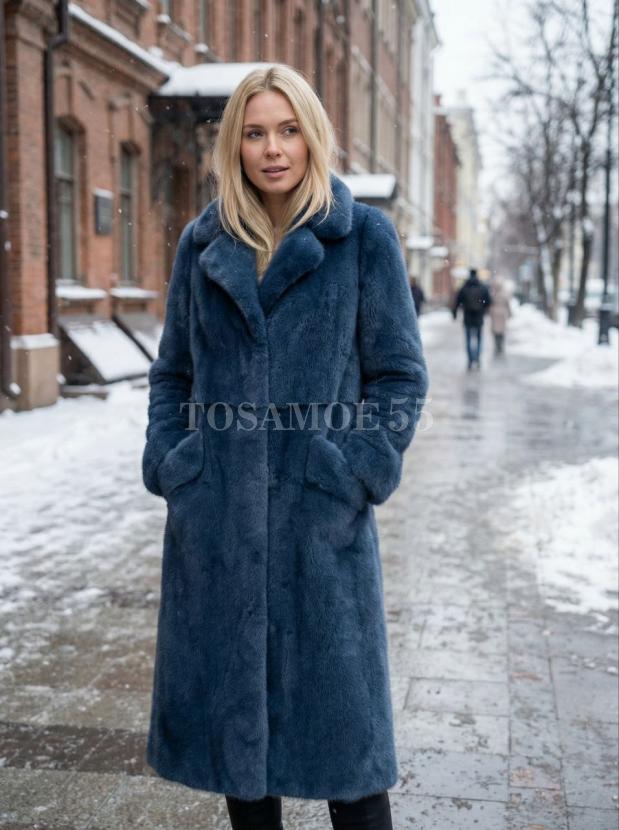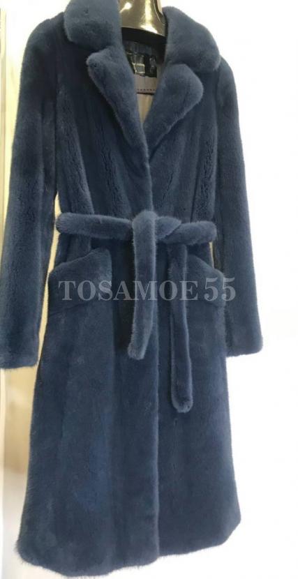 Шуба из норки темно-синего цвета